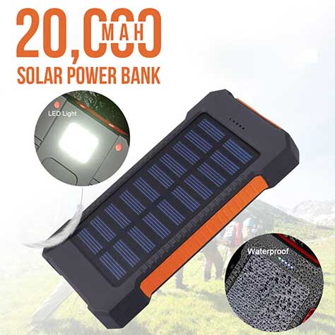 A portable battery pack that has a large capacity of 20000mAh, which means it can hold a lot of power and recharge devices multiple times. The sturdy and durable material suggests that it's built to last and withstand wear and tear, which is important for outdoor enthusiasts who need reliable equipment.